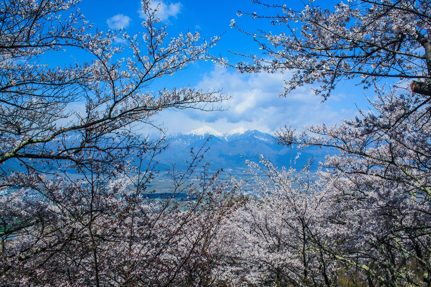 咲き誇る花のいのちが広がる里と、残雪が物語る山の静けさ。異なる季節が共に息づくこの風景には、信州の自然が持つ奥深さが映し出されています。