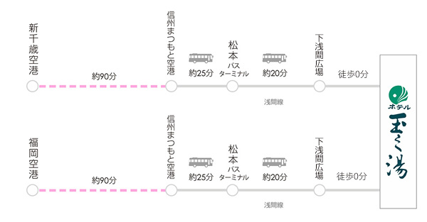 東京・名古屋からも2~3時間と心地良い旅情を味わえる距離であり、松本駅から約20分というアクセスの良さ。